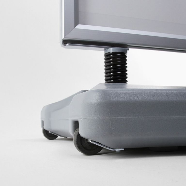 Speziell für Ihre Werbung in windigen Bereichen ist der Kundenstopper WINDTALKER® von f-Werbung in Erfurt die optimale Lösung. Sein mit Wasser oder Sand befüllbarer Standfuß bietet in Verbindung mit den Spezialfedern aus Stahl eine hohe Standfestigkeit. Für den einfachen Transport sind im Standfuß Rollen integriert. So können Sie den Kundenstopper trotz des Standgewichtes einfach bewegen. Der Aluminium-Schnellwechselrahmen kann doppelseitig mit Plakaten bestückt werden und garantiert Ihnen auch bei hohen Windstärken eine auffällige Werbemöglichkeit.