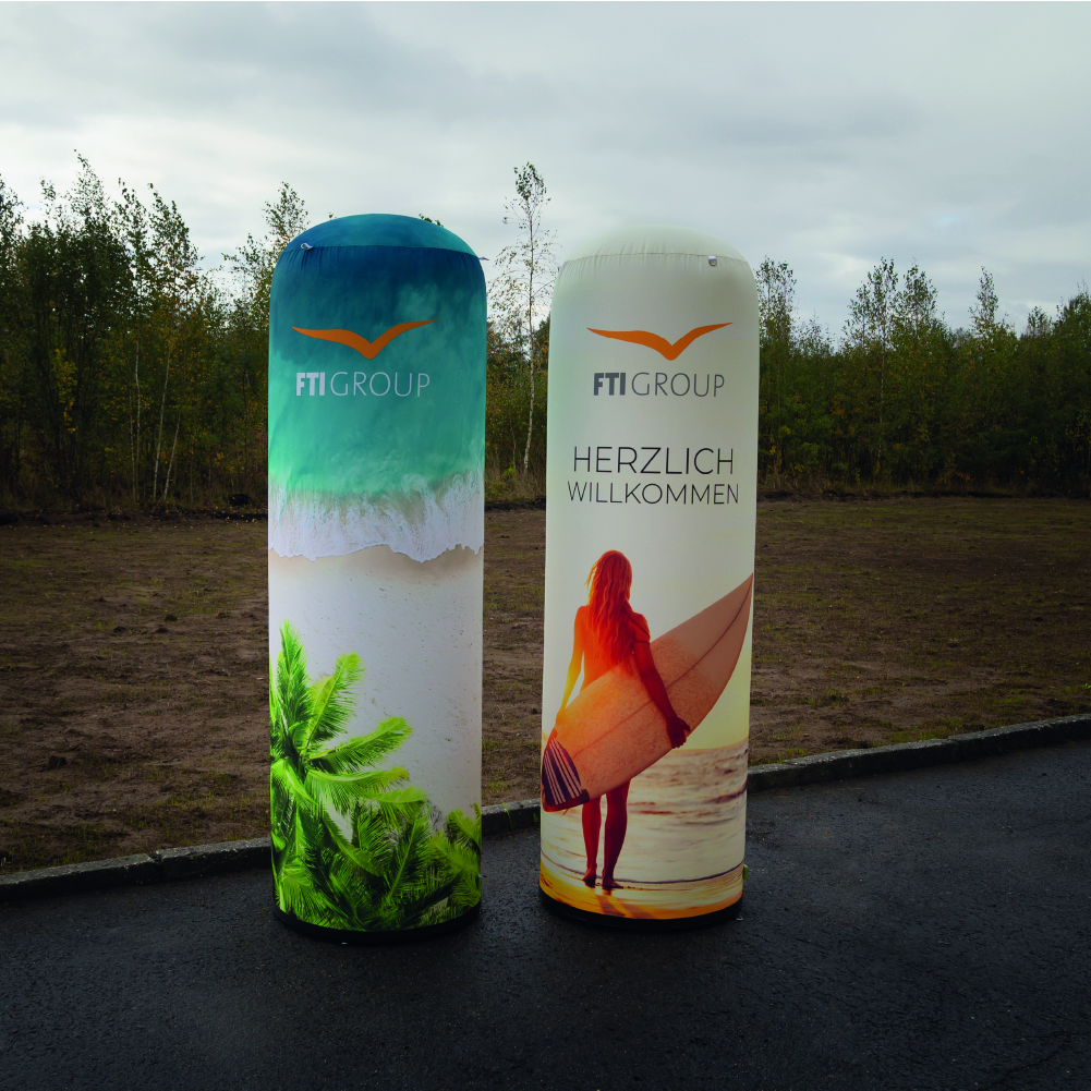 Aufblasbare Werbesäule pneumatisch (D 67 cm x H 400 cm) bedruckt in Erfurt bei f-Werbung