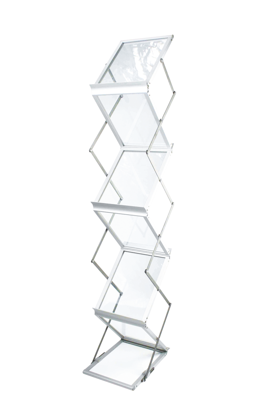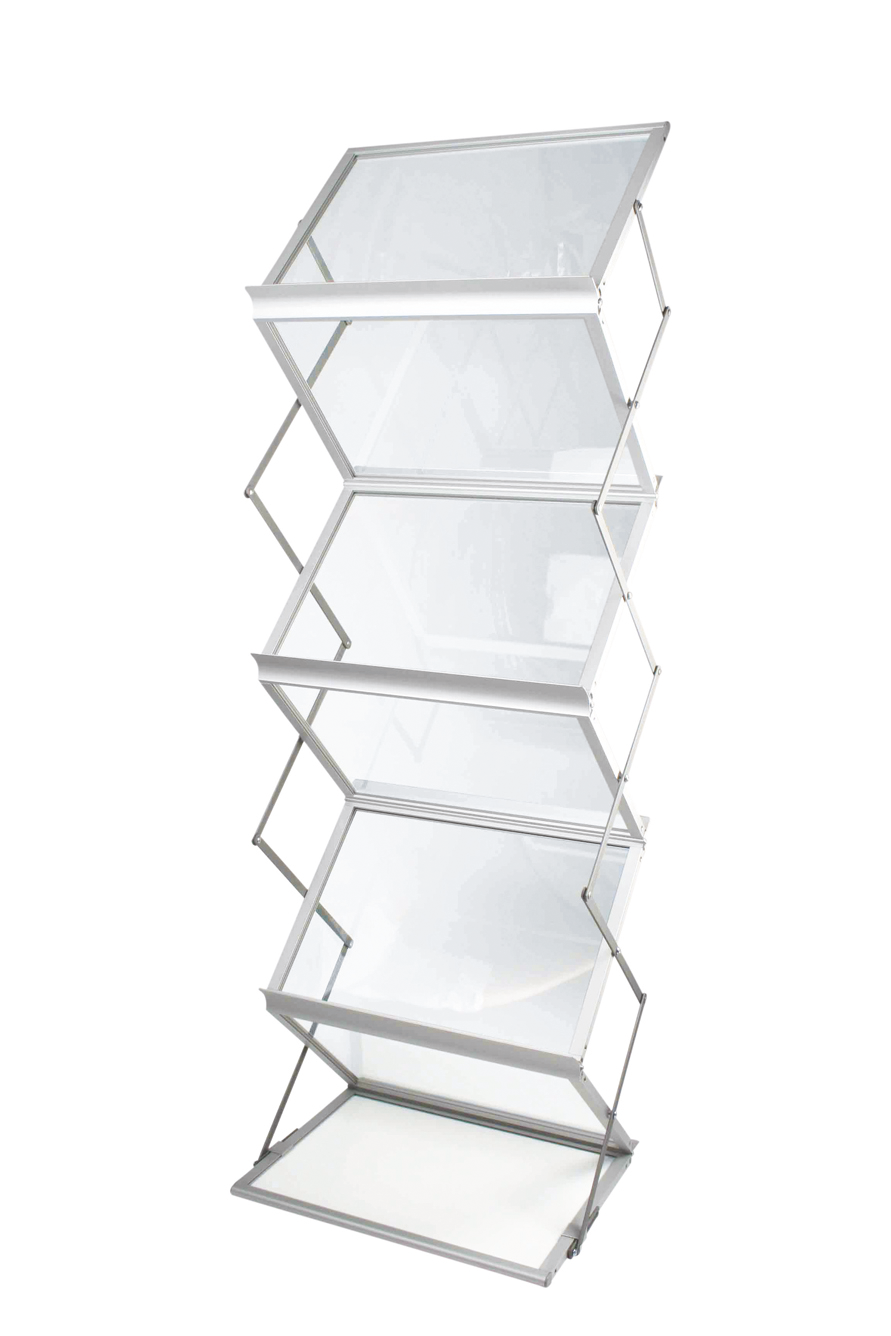 Mit dem Zed-Up Lite Prospektständer von f-Werbung in Erfurt erhalten Sie einen populären Aluminium-Ständer mit insgesamt sechs doppelseitigen Acrylablagen. Der Ständer lässt sich platzsparend zusammenklappen und verfügt außerdem über ein sehr leichtes Gewicht. Zudem ist ein stabiler Koffer inklusive, sodass der Transport besonders einfach und bequem möglich ist. Das macht den Zed-Up Lite ideal, um zu Messen, Events, Präsentationen und sonstigen Veranstaltungen mitgenommen zu werden.