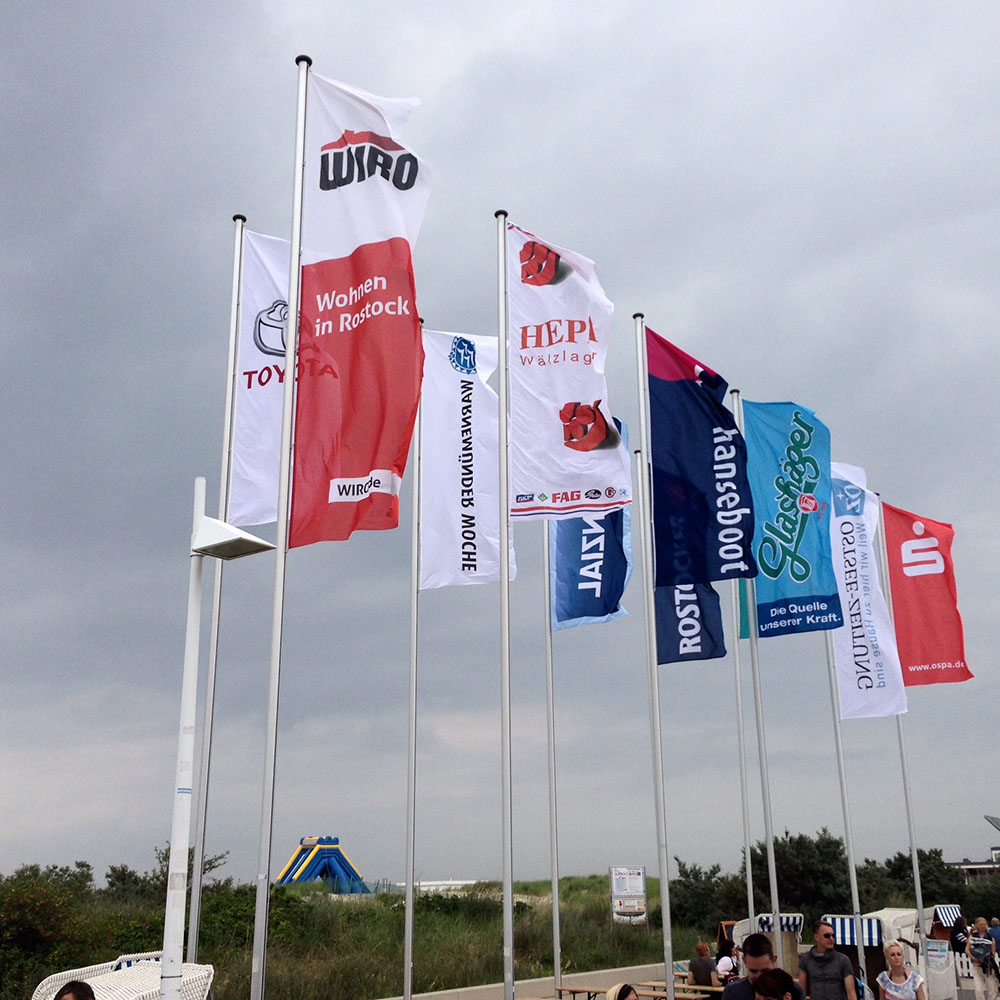 Die Hissflaggen von f-Werbung in Erfurt sind auch von weitem sehr gut sichtbar und fesseln die Blicke der Passanten. Die Hissflaggen sind sehr stabil und witterungsbeständig, weswegen sie ideal für die Anwendung in Außenbereichen geeignet ist. Hissflaggen werden beispielsweise gerne auf Firmengeländen genutzt, damit Passanten und Anreisende schon von Weitem sehen, wo das Unternehmen seinen Sitz hat. Aber auch auf Messen, Festen, Sportveranstaltungen, bei Vereinen oder vielem mehr machen sie eine gute Figur.