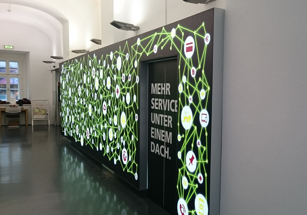 Der MULTIframe SIDELIGHT von f-Werbung ist ein vollflächig hinterleuchteter LED Rahmen mit einer Bautiefe von nur 12 cm. Das einseitig verwendbare Aluminiumrahmenprofil eignet sich hervorragend für die Wandmontage. Durch die spezielle Linsenform der LED Module kann man trotz der schmalen Bautiefe keinerlei Lichtpunktbildung auf der Stoffoberfläche entdecken – das Motiv wird einheitlich und schattenfrei dargestellt. Die Stoffgrafiken sind mit Gummilippen versehen, die ihnen einen perfekten Halt im Rahmensystem ohne Falten geben. Darüber hinaus ist mit diesem System ein einfacher und rascher Grafikwechsel möglich. Nicht nur die Leuchtkraft von ca. 5000 lm, sondern auch die homogene Ausleuchtung machen den MULTIframe SIDELIGHT zu einem Leuchtrahmen, der alle ähnlichen Produkte in den Schatten stellt. Alle Systemteile sind auch als Einzelteile erhältlich.