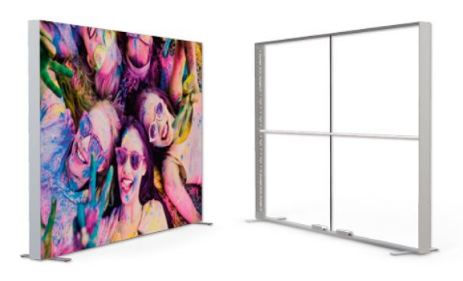 Der MULTIframe SIDELIGHT von f-Werbung in Erfurt ist ein vollflächig hinterleuchteter LED Rahmen mit einer Bautiefe von nur 12-16 cm (bis 200 cm Höhe: 12cm, ab 250cm Höhe: 16cm Bautiefe). Das einseitig und doppelseitig verwendbare Aluminiumrahmenprofil eignet sich dank der stabilen Füße hervorragend für den Einsatz als Raumteiler. Durch die spezielle Linsenform der LED Module kann man trotz der schmalen Bautiefe keinerlei Lichtpunktbildung auf der Stoffoberfläche entdecken – das Motiv wird einheitlich und schattenfrei dargestellt. Die Stoffgrafiken sind mit Gummilippen versehen, die ihnen einen perfekten Halt im Rahmensystem ohne Falten geben. Darüber hinaus ist mit diesem System ein einfacher und rascher Grafikwechsel möglich. Nicht nur die Leuchtkraft von ca. 5000 lm, sondern auch die homogene Ausleuchtung machen den MULTIframe SIDELIGHT zu einem Leuchtrahmen, der alle ähnlichen Produkte in den Schatten stellt. Alle Systemteile sind auch als Einzelteile erhältlich.