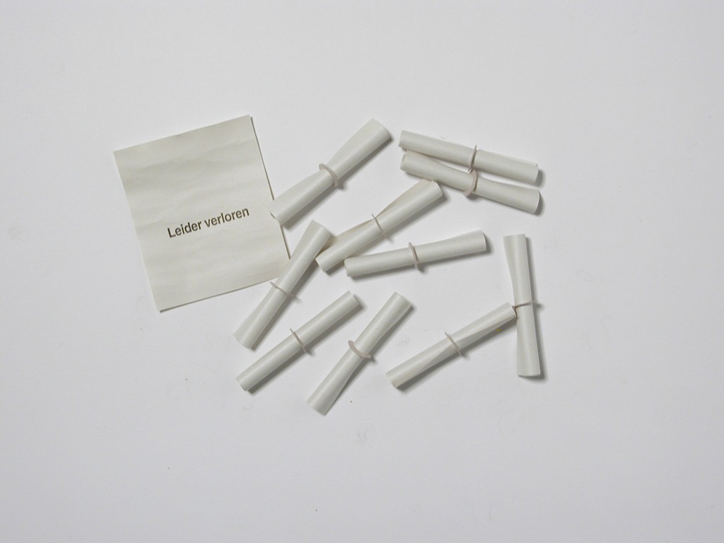 Schon fast 100 Jahre alt, aber noch immer Bestseller - die Röllchenlose von f-Werbung in Erfurt. Das liegt sicher an ihrer Einfachheit, am Rascheln in der Losbox und an der Spannung beim Öffnen der Lose.