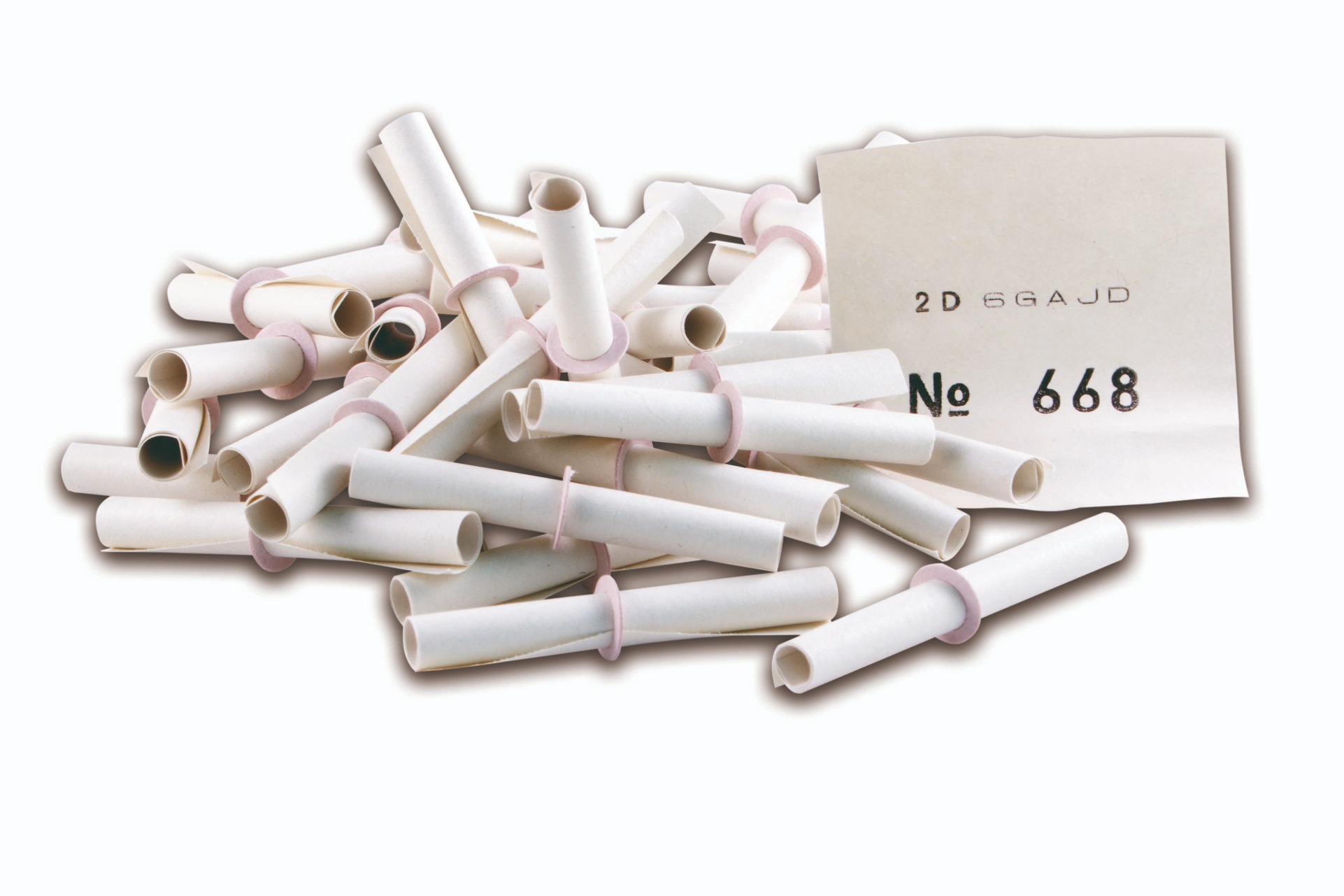 Schon fast 100 Jahre alt, aber noch immer Bestseller. Röllchenlose von f-Werbung aus Erfurt für Tombolas und Gewinnspiele aller Art.