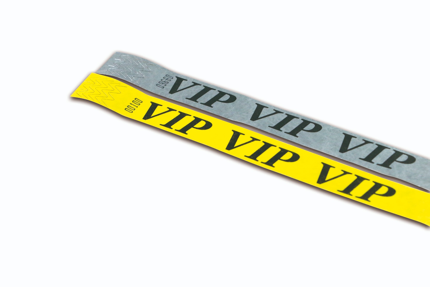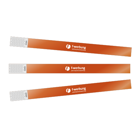 Die praktischen Einlassbänder aus papierähnlichem und reißfestem Tyvek von f-Werbung in Erfurt werden mit einem Klebestreifen verschlossen. Beim Öffnen des Klebestreifens wird die Perforation am Band zerstört. Somit sind unsere Tyvek-Bänder genau so sicher wie Einlassbänder mit Plastik-Verschluss und nicht übertragbar.